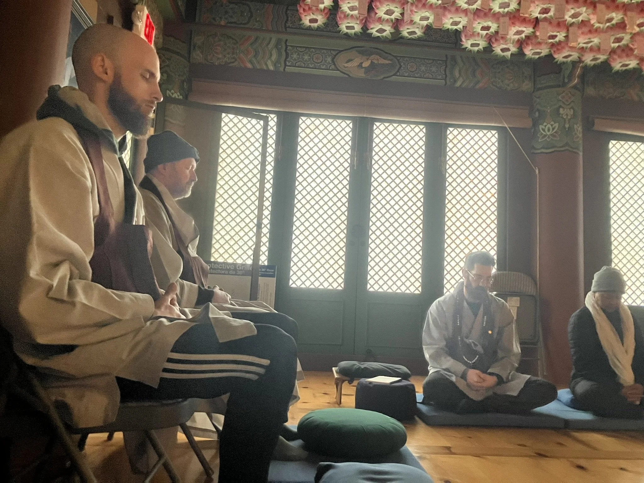 We practice a form of Zen that came to Korea via China, via India, back to Buddha. Our teachers have done years of formal training. We’re relaxed but dedicated. We’re all people who all looking to make sense of it all. Newcomers, you can check out our how to meditate guide. Saturdays and Sundays are good days to start but we have practice at the center daily.